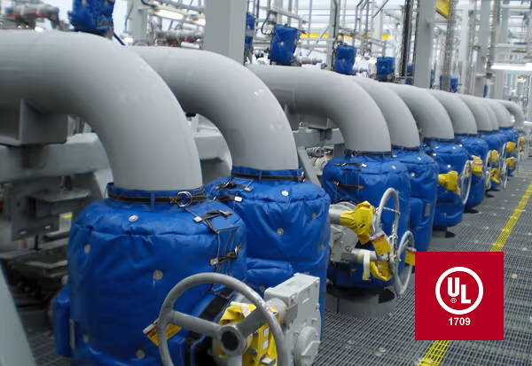 Our ProSol™ PFP custom insulation jackets are engineered for PFP passive fire protection, offering reliable jet blast fire and hydrocarbon fire protection for critical equipment, especially those that need to retain a degree of accessibility during normal non-fire operations in order to perform maintenance and inspections.