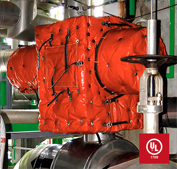 Our custom insulation jackets offer a superior approach to PFP passive fire protection. The ProSol™ PFP system is engineered for flexibility, performance, and reusability. Unlike fixed systems, ProSol™ installs directly onto your equipment—no external brackets or mounts required. Its modular, lightweight construction conforms precisely to your components while maintaining full access and visibility for inspections and maintenance.